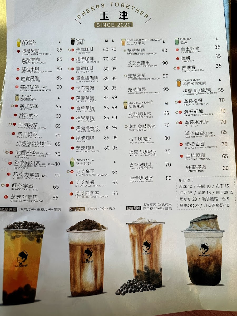 Introducing the Menu of Y.J COFFEE 玉津咖啡-平鎮南京店